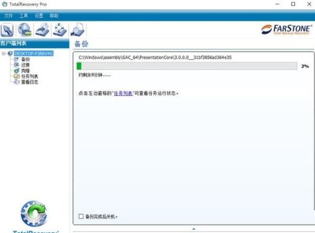 5,选择确定后,如下备份界面将会出现,显示正在备份,这个过程大概会持续1-2个小时,视机器性能而定。