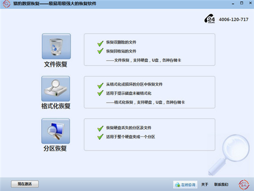 3、恢复效果最优:猎豹数据恢复是一款技术领先、功能强大、简单易用的数据恢复软件,使用猎豹数据恢复,您能迅速地恢复丢失的文件或分区。
