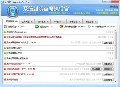 全面扫描系统信息、封装部署必备文件、