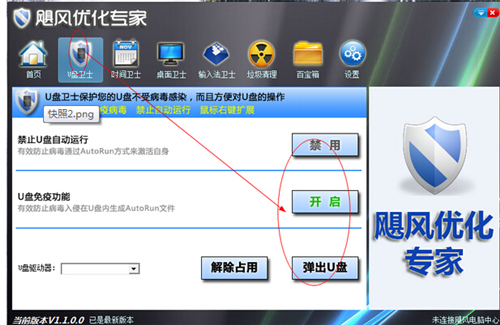 飓风优化专家的U盘卫士可以使电脑有效免疫U盘病毒,让用户不再担心U盘病毒的感染。
