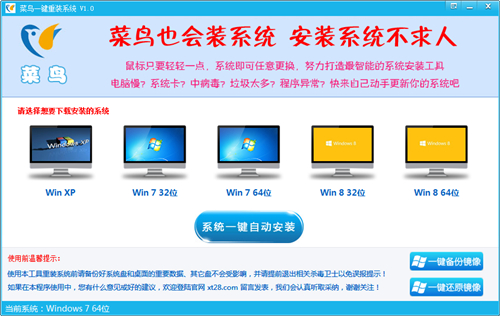 菜鸟系统软件工具具有体积小,速度快,更智能,更人性化的特点。无需电脑知识,点点鼠标即可完成系统的重装功能,真正做到人人都会安装系统的目的。