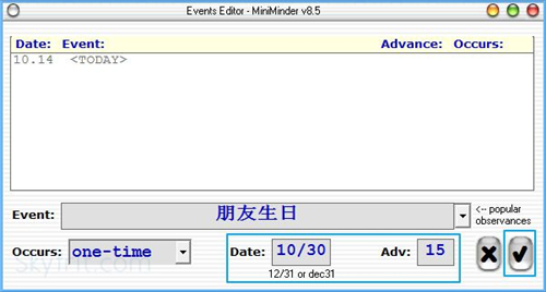 4、可按指定频率反复提醒:5分钟、半小时、1小时、1天、1年等,包您忘不了。