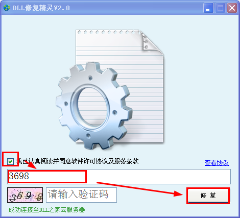 2、修复dll文件需勾选“同意协议”