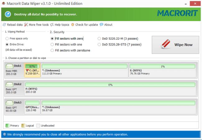??Macrorit Data Wiper是款功能很全面的一款操作软件。Macrorit Data Wiper可以帮助我们删掉电脑里不想要的一些数据,并且还是彻底删除。
