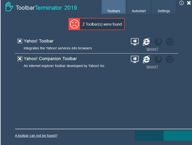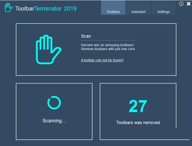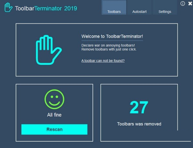 ToolbarTerminator会在每个Windows启动时扫描您的PC上的工具栏,并在一个简洁的仪表板中显示所有这些工具栏,以便您轻松删除它们。它完美地保护您的系统免受不必要的工具栏的侵害