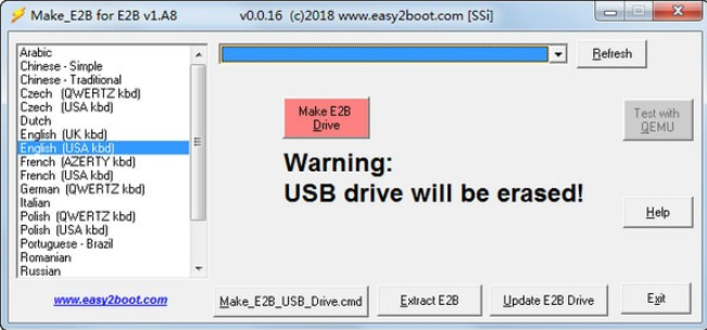 – 打开 Easy2Boot \ ISO \docs\ MakeE2BUSB ; 管理员启动 Make_E2B_USB_Drive.cmd