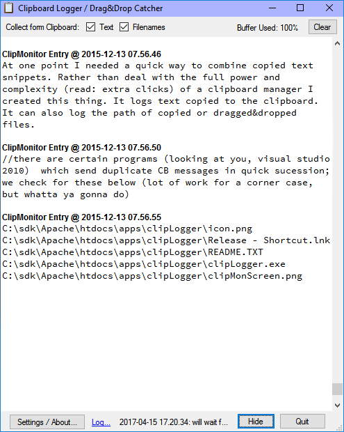 4、还有一个“快速访问”菜单,你可以用热键相关。这就像一个修改菜单的右键菜单:它来老鼠当你点击热键,和消失,当它失去焦点。其主要目的是让你清晰或粘贴ClipLogger的内容,当你在另一个应用程序的工作。在快速访问菜单都有关键的分配给他们的命令,因此可以从键盘专用。