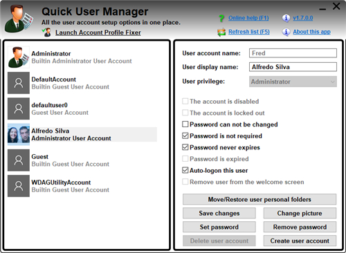 注意:删除一个用户帐户后,你将不再能够使用已删除的用户帐户登录。请考虑创建一个注册表备份和用户配置文件备份之前使用此功能。