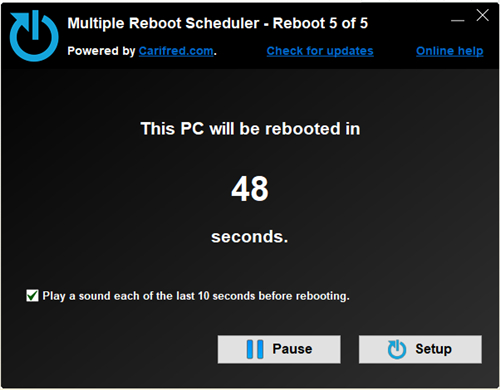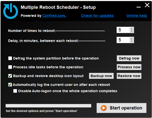 你可以告诉应用程序你想多少次,重新启动计算机,重新启动延迟和彼此之间。只要输入所需的值在相应的试验箱或使用上/下箭头增加/减少的电流值。