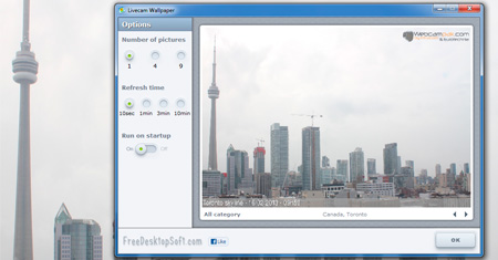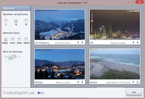 2、Livecam Wallpaper 跟其他自动更换壁纸的软件不同,它的壁纸都是来自世界各地的各个摄像头所拍摄的即时画面,可以让你在家里就窥探整个世界哦。