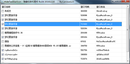 把需要隐藏图标的窗口前面勾打上,不隐藏的时候直接去掉勾就可以了,隐藏后任务栏无图标,可以通过Alt+Tab切换查看窗口