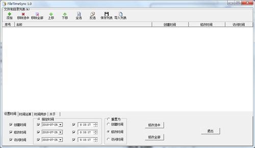 filetimesync官方版操作简便,高效简洁,安全性较高,极具亲和力,软件界面简洁,功能一目了然。可以对文件/目录的创建日期、修改日期或访问日期进行批量设置和修改,并支持对文件时间进行加减运算和目录间的时间同步,是文件时间修改的有力助手。