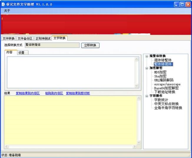 睿元文件文字助理是款操作简单功能很全面的软件。睿元文件文字助理字数统计、中英文标点互转、全角半角字符转换。用起来很全面的一款操作软件。