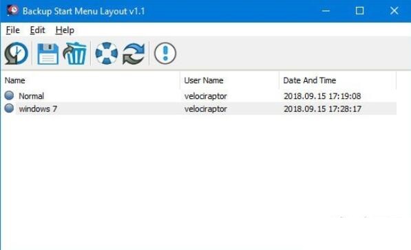 ????2.如果选择备份条目并使用第一个图标您可以恢复保存的Windows 10开始菜单布局。你也可以双击它