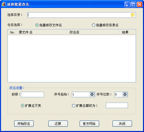 浪迹批量改名官方版是一款是一款小巧而又简便的免费批量改名软件,可实现对目录或文件名进行批量改名,功能强大,操作简单。只需要选择目录,然后再点批量修改文件名或者修改目录名,点击开始改名就可以了。用户也可以自己设置扩展名,序号位数等信息。