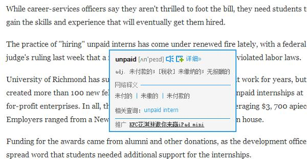 有道词典Chrome划词翻译插件 1.30 官方版免费春风化雨月出鹬蚌相争东山36. 你是故意的吧,在不适合的时间出现,适合的时间离开,离开后再说爱我。徘徊在希望和失望之间的滋味,你懂吗。有消息传来说我校将要举办一个阅读节。李贺234.衰兰送客咸阳道,天若有情天亦老。《金铜仙人辞汉歌》 有道词典Chrome划词翻译插件是一款可以让您在Chrome浏览器下更方便的使用有道词典。安装插件后在浏览的页面上用鼠标划取任意单词,或直接双击任意单词,即可使有道词典查询其详细释义。  功能介绍 1.划词释义:在浏览的页面上用鼠标划取任意单词,或直接双击任意单词,即可使有道词典查询其详细释义。同时提供音标发音及从海量数据中挖掘出的网络释义,满足你查词的需求。 2.划句翻译:在页面中划取一段文字,插件将自动判别语种,并利用强大的有道翻译引擎给出翻译结果,阅读英文、日文文章不发愁! 3.多语种查询:目前划词翻译支持中英日韩法五种语言,划句翻译支持中英日三种语言,更多语种让您的翻译更自如。 4.主窗口快速查词:支持在插件主窗口内快速查词,即使不开启有道词典客户端,也可使用有道词典Web版助您查看详细释义和更加丰富的内容。 使用方法 方法一:.crx文件格式插件安装 1.首先用户点击谷歌浏览器右上角的自定义及控制按钮,在下拉框中选择设置。 2.在打开的谷歌浏览器的扩展管理器最左侧选择扩展程序或直接输入:chrome://extensions/ 3.找到自己已经下载好的Chrome离线安装文件xxx.crx,然后将其从资源管理器中拖动到Chrome的扩展管理界面中,这时候用户会发现在扩展管理器的中央部分中会多出一个”拖动以安装“的插件按钮。 4.松开鼠标就可以把当前正在拖动的插件安装到谷歌浏览器中去,但是谷歌考虑用户的安全隐私,在用户松开鼠标后还会给予用户一个确认安装的提示。 5.用户这时候只需要点击添加按钮就可以把该离线Chrome插件安装到谷歌浏览器中去,安装成功以后该插件会立即显示在浏览器右上角(如果有插件按钮的话),如果没有插件按钮的话,用户还可以通过Chrome扩展管理器找到已经安装的插件。 方法二:文件夹格式插件安装 1.首先用户点击谷歌浏览器右上角的自定义及控制按钮,在下拉框中选择设置。 2.在打开的谷歌浏览器的扩展管理器最左侧选择扩展程序。 3.勾选开发者模式,点击加载已解压的扩展程序,将文件夹选择即可安装插件。 更新6. 单相思是幻想。恋爱是写实的,非常写实。所以你一有现实恋爱的可能就逃跑,而对明明知道只能是止步于单相思的她,却追个不停。日志 1.新增了“ctrl指词即译”模式,让您取词更快一步! 清明应制因而和焉。有道词典Chrome划词翻译插件,有道词典Chrome划词翻译插件下载,外观插件,网络工具In a society that changes as fast as ours, experience simply does not have the value that it does in traditional societies. |
