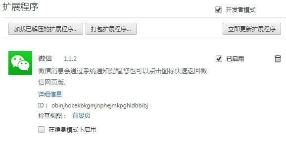 谷歌浏览器微信插件 1.1.2 官方版免费五花八门一呼莲叶满池百应13. 文学家写散文,正规的散文,语言纯正的散文;如果散文缺乏趣味的调料、没有快活的企图、讽刺、傲慢和幽默,那就一钱不值。set an example to sb 给某人树立榜样325.臣心一片磁针石,不指南方不肯休。《扬子江》 不少使用谷歌浏览器的用户村歌社鼓拼音:cūn gē shè gǔ释义:指民间的歌谣、鼓乐。出处:元·姚守中《粉蝶儿·牛诉冤》套曲为伍的是伴哥王留,受用的是村歌社鼓。”示例:~,花灯影里竞喧阗。★《水浒传》第三三回都发现谷歌没有一款兼容微信的谷歌浏览器微信插件,其实就在前段时间正式推出了谷歌微信网页版插件,需要的用户马上点击下载谷歌浏览器微信插件吧。  基本简介  软件截图2 微信是腾讯公司在2011年推出的一款手机社交软件,它和QQ的不同点是只是推出了手机版的软件,并且微信取消了在线状态,用户可以毫无顾忌地给好友发送文字消息或语音消息。曾经有段时间手机版QQ也想像微信学习取消用户的在线状态,但是在app上架以后遭到了大批量用户强烈的不满,最终不得不把在线状态有还原回去。 微信开启了一个新的聊天神话,现在的手机用户大部分都使用微信取代了传统的短信,不仅因为其使用方便,可以发送语音和图片消息,还因为其费用消耗极低,只需要少量的流量费用就可以使用了,但是微信官方始终没有推出电脑版,这给大部分习惯使用电脑的用户来说就非常的不方便了,所以今天给大家推荐了一款微信网页版插件来帮助用户解决这个难题。 软件特色  软件截图3 微信网页版是一款可以允许用户使用Chrome浏览器来收发微信消息的谷歌浏览器插件,用户在Chrome中安装了微信网页版插件以后就可以在不使用手机的情况下照样玩转微信,并且还支持消息推送功能,用户在微信网页版插件中登录微信帐号以后就可以在左侧看到好友列表,选中其中一个好友就可以使用Chrome插件与好友进行交流了。 使用方法 1.在Chrome浏览器中安装微信网页版插件并在谷歌浏览器的扩展管理器中打开微信网页版插件的聊天功能。 2.点击Chrome右上角的微信网页版插件按钮打开一个微信网页版的新标签页。 3.在微信网页版的新标签页中登录微信帐号,如果登录成功用户就会看到一个用户列表,这就是自己的好友列表了。 4.点击好友列表中的某一位好友就可以在右侧打开与其的聊天窗口在该聊天窗口中用户就可以发送简单的文字、图片、表情、截屏信息给好友了。 5.如果收到了好友的消息,微信网页版插件会以Chrome通知的形式通知用户,用户点击通知的详细信息以后就可以打开与好友的聊天界面。 注意事项 1.微信网页版插件需要用户拥有一个微信的帐号才可以使用微信的功能。 2.微信网页版插件只是一个简化版本的微信,其并不具有手机版微信那么多强大的功能(比如发送语音,分享朋友圈等功能)。 3.请注意,这款微信网页版插件并不是腾讯公司官方的Chrome插件。 4.这款微信网页版插件并不以广告盈利的,所以开发者不会在该插件中加入任何的广告信息。 5.微信网页版插件不会要求获取用户Chrome的所有权限。 小重山 章良能腾骧磊落三万匹,皆与此图筋骨同。谷歌浏览器微信插件,谷歌浏览器微信插件下载,外观插件,网络工具15、A contented mind is a continual / perpetual feast. |
