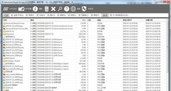 Advanced Recent Access(最近使用文件管理软件) 11.1.033 官方版免费微阳春三月乎一模一样其微34. 昏暗的台灯下,我凝视着这一杯茶,沸水一次又一次的冲击,让我感到了茶的清香。那苦涩中略微含着的一点甘甜,也被我贪婪的嘴给霸占了,眼的朦胧,勾勒出朦胧的记忆,可记忆却已不再朦胧。have a brief understanding of:对......有简单的了解文天祥324.人生自古谁无死?留取丹心照汗青。《过零丁洋》 AdvancedRecentAccess是一款最近使用文件管理软件,可以帮助用户管理最近打开使用过的文件,可以根据分类查看,可以查看到名称、路径、大小、打开次数、类型、修改日期、创建日期等信息。  功能介绍 1、能查看最近使用资源的更多属性,比如路径、大小、类型、修改日期及创建日期。 2、自动记录访问次数。 3、自动删除不存在的最近使用资源。 4、能根据类型快速过滤最近使用资源,比如目录、文档、图片、音频、视频、压缩包及其他。 5、能按以上任何属性对最近使用资源排序。 6、显示最近使用资源条目数。 7、自动刷新最近使用资源列表。 8、自动记录各列次序及宽度、排序列及顺序。 9、自动记录主界面位置及大小。 9、能隐藏您不想看到的任何列。 使用方法 1、下载软件后,解压安装 2、打开软件后,界面如下图所示  软件截图2 3、可以根据需要,选择分类  软件截图3 4、下方能够查看到文件详细信息 5、一般默认语言是中文,如果是英文界面,可以选择language-简体中文,设置为中文界面  软件截图4 41. 分手后不要回头,就算那段感情再甜蜜它也只是一个曾经。