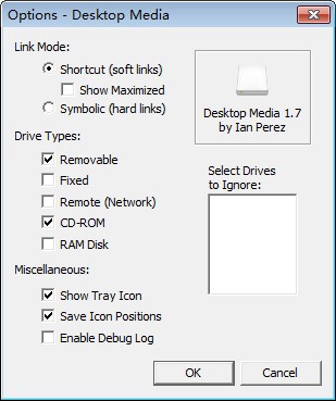 Media官方版能够在桌面显示驱动器的快捷方式,插入存储介质后,桌面显示其图标,支持可移动硬盘、固态硬盘、网路硬盘、CD-ROM等多种类型,也可以设置规则,只显示部分硬盘!