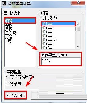 2、设置材料的长度或厚度,即可自动给出型材的重量