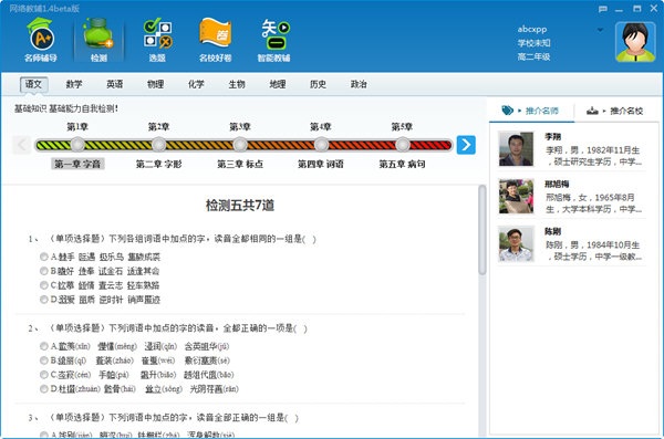 2、检测:实现随时随地自我检测,科学严密的检测体系,让学生轻松的自我检测,有的放矢的学习!