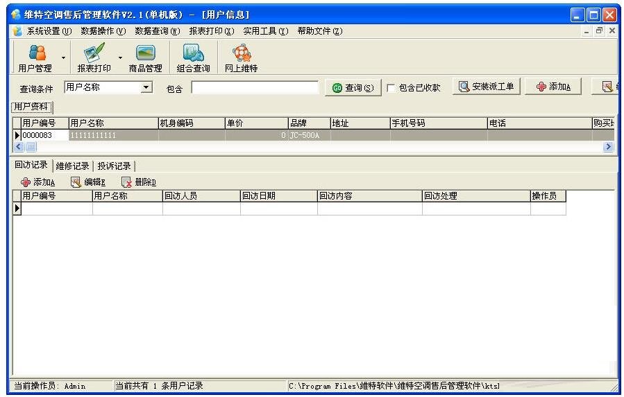 *维特空调售后管理软件最新版运行于Windows98/2000/XP/2003/VISTA 平台,界面清晰直观,操作简便。