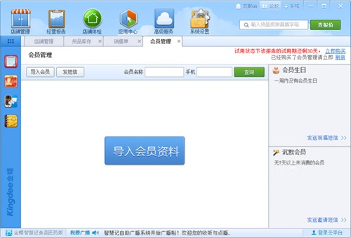 7、系统简单易用,灵活方便,无需专门培训,使您轻易由手工账本转换为电子账本,充分享受电脑管理为您带来的轻松便利。每天登记进出货、快速开单、查看库存、查看欠款、查看收支;清晰管理商品的批号及保质期,并对即将到期的商品进行提前预警。