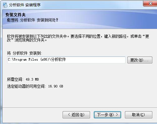 4、选择安装文件夹,默认的是“C:\Program Files (x86)\分析软件”,想修改点更改