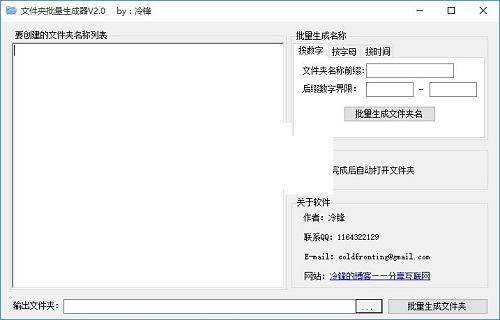 文件夹批量生成器绿色版是一款可以在很短时间内生成大量文件的文件夹批量生成工具,文件夹批量生成器绿色版非常适合用于各种办公领域,它不仅可以为用户提供一个批量生成文件夹的平台,还可以直接对新建的文件夹进行命名,可以以不同的文件夹分类进行分组,这样生成出来的文件夹就可以直接使用。