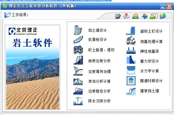 ⑴ 包括13种类型挡土墙――重力式、衡重式、加筋土式、半重力式、悬臂式、扶壁式、桩板式、锚杆式、锚定板式、垂直预应力锚杆式、装配式悬臂、装配式扶壁、卸荷板式;⑵ 参照公路、铁路、水利、市政、工民建等行业的规范及标准,适应各个行业的要求;可进行公路、铁路、水利、水运、矿山、市政、工民建等行业挡土墙的设计。
