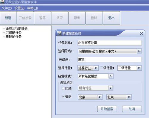4、搜索条件支持行业、二级行业、关键词、经营模式、省份、城市、地区等条件搜索;