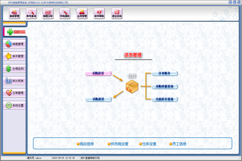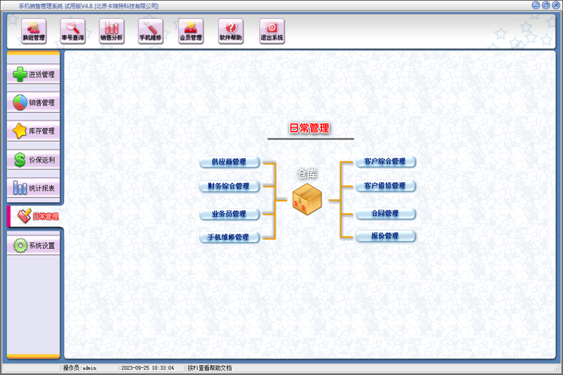 卡瑞特手机销售管理系统是一款专业的手机销售管理软件,其中包含手机进销存系统,手机库存管理系统(手机仓库管理系统),财务和报表系统等子模块。其中的手机串号管理功能更是融贯了功能的复杂性和使用的方便性。手机管理软件广泛适用于手机销售店,手机卖场等用于手机销售管理,手机库存管理,手机店内部的客户管理,员工管理等场合,是您企业进行信息化管理的强大工具。