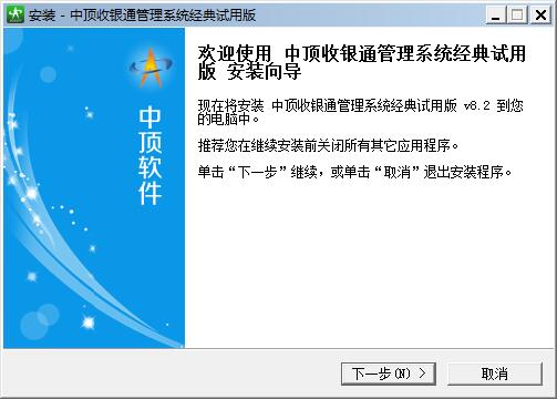 1.下载解压中顶收银通管理系统电脑版软件包后并运行.exe安装程序,点击下一步