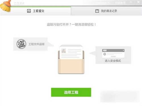 2、选择需要清洁的广联的工程文件即可清洁,上传,等待技术人员帮你修复。不过不要抱太大希望,只要您的文件有提示盗版,您等待的就是告诉你使用了盗版,无法修复。