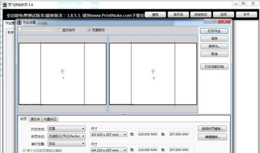 FlyingPages正式版是一款界面简洁友好,功能强劲实用,操作简单的pdf拼版折页软件,FlyingPages正式版内置作业管理器、模板管理器、条形码管理器、排版样式管理器等,可以进行骑马钉、单联和联排操作,可以满足不同排版用户的使用需求。