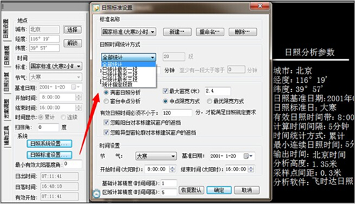 1、标准灵活:轻松设定日照标准,预设主要城市标准模版,选择城市名称自动获取经纬度,从结果标注可反查计算标准。