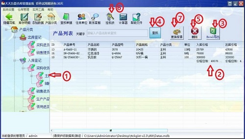 编号3:点击可以把当前列表的数据导出都电脑里面。需要4级或4级权限以上操作员。