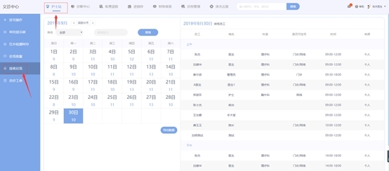 2. 排班情况需要在诊所管理-排班计划中设置好医生的排班情况,方可在排班总览中显示,如没有排班,则不显示