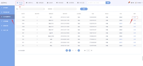 若有患者要进行红外检测检查,可以进入【红外检测叫号】界面,点击【叫号】,系统即会提示患者就诊。(红外检测功能需要购买我们的ww红外检测设备才可使用)