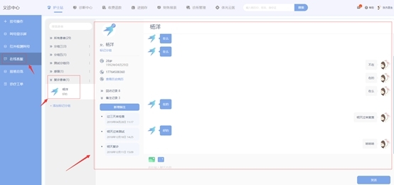 2. 在线客服的主要功能,患者可以通过微信公众号直接咨询诊所的医生,医生可通过在线客服给患者发送回访问卷,了解患者情况