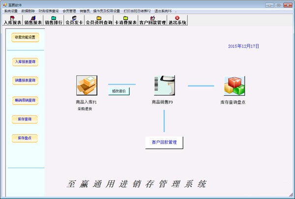 至赢通用进销存管理系统最新版是一款界面简洁大方,新手也好上手的进销存管理软件。至赢通用进销存管理系统最新版功能非常强大,包括入库报表、销售报表、销售排行、会员发卡、会员资料查询、卡消费报表、客户回款管理,为企业管理者的日常工作带来了极大的便利。
