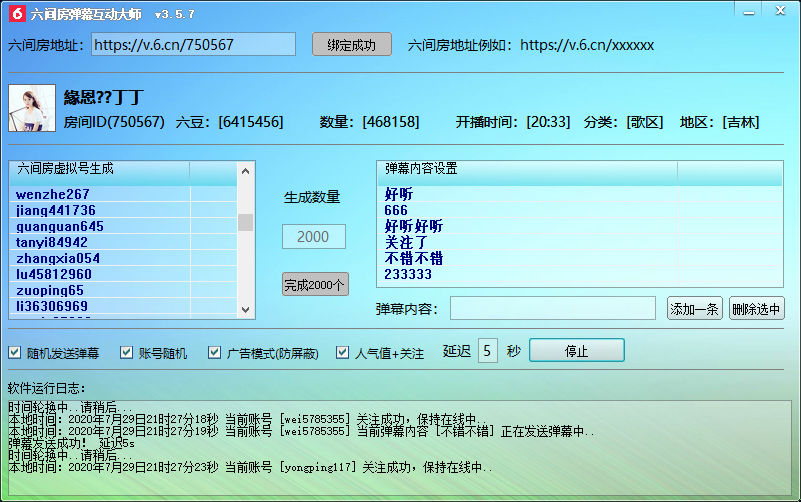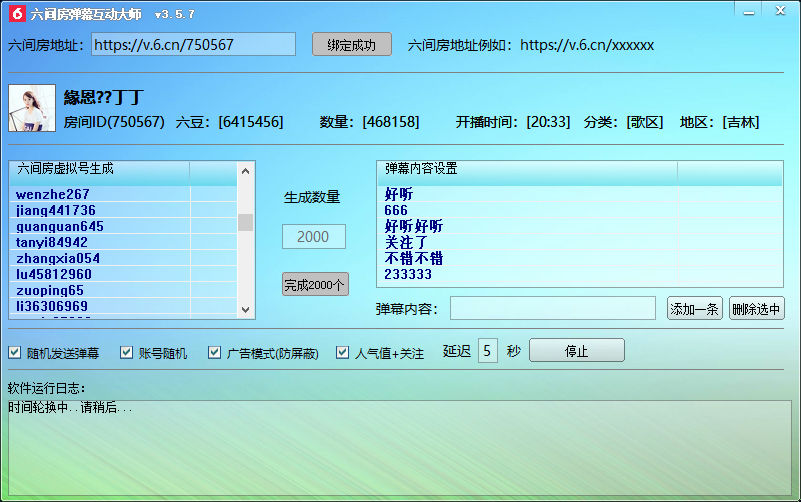 六间房弹幕互动大师官方版是一款页面简直观、上手非常容易操作的在线弹幕互动软件,六间房弹幕互动大师官方版软件还支持弹幕管理,支持自定义虚拟账号,支持自定义弹幕内容!并且支持订阅和在线,更多功能期待您的发现!