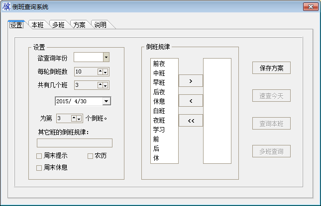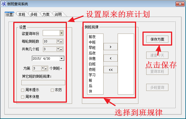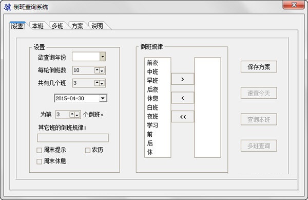 3、倒班查询系统最新版可以为倒班设置方案名称以及相关说明、规律;