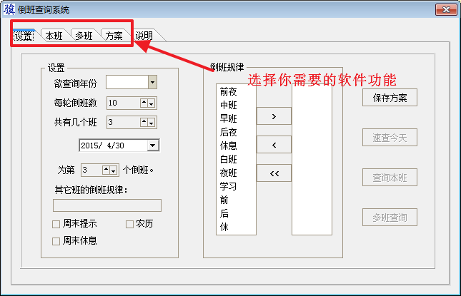 1、该倒班查询软件可以设置查询年份、每轮倒班数等;
