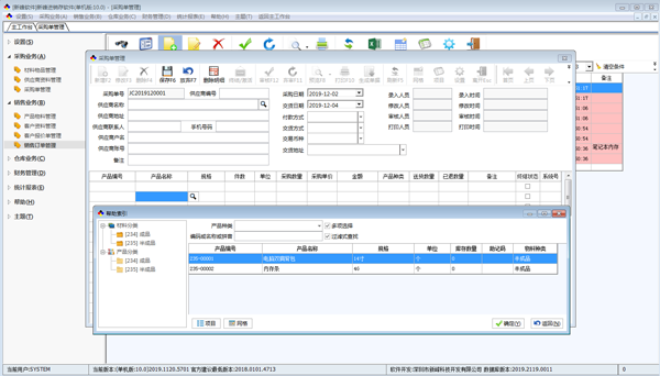 新峰进销存软件官方版具有BOM组装功能,销售订单,采购订单,入库,出库,送货,库存。财务,进销存报表等功能 包括送货单软件的全部功能。可以实际看到订单的交货情况 新峰进销存管理系统V10.0适用于多种模式生产流程。