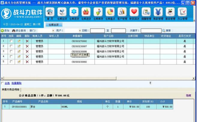 1、仓库出货