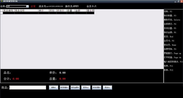 商品销售:进行商品的销售工作,用户可以通过输入商品的条码,编号来选择商品。
