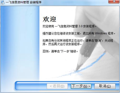 1.在本站下载一飞个人信息管理平台官方版安装包,解压后,双击exe程序,进入安装向导,单击下一步