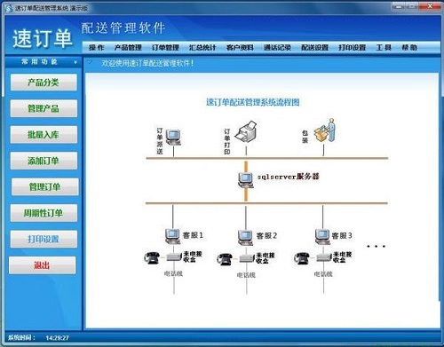 速订单配送管理软件官方版支持多客服管理、网络预订、网络打印、来电弹屏;