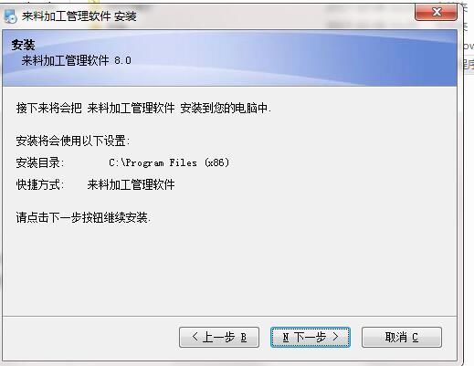 7.正在安装蓝软坊来料加工管理软件中,耐心等待一下